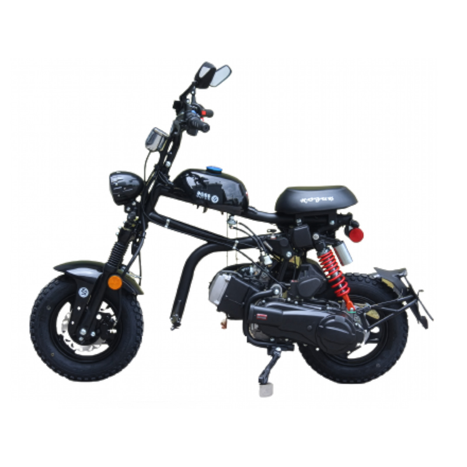 Constructed from a high-strength steel frame, the Rogue 150 combines durability with super-light handling. Its telescopic front suspension and rear single air coilover ensure a comfortable ride on city streets. The front disc and rear drum brakes provide reliable stopping power, while its electric start system and modern lighting make it a fully street-legal vehicle. With over 100 MPG efficiency and a 1.15-gallon tank, the Rogue 150 is designed for practical, everyday performance. Assembly is simple, with only the front wheel, handlebar, battery, and mirrors requiring installation.