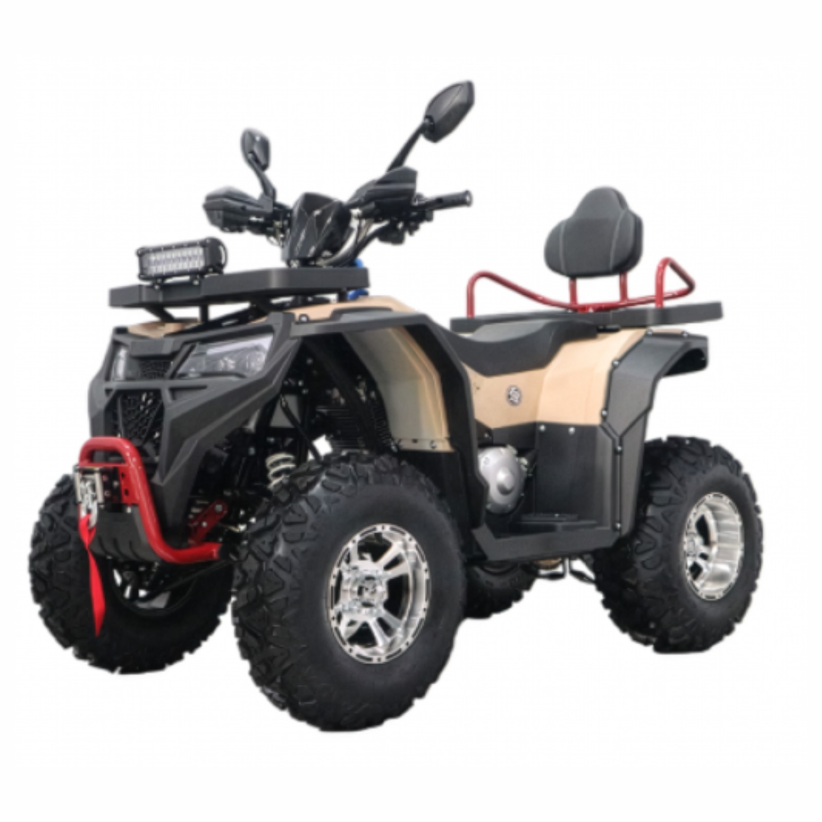 Constructed with a high-strength steel frame, the DF200AVX-25 offers a ground clearance of 130 mm and a 6 L fuel tank for extended range. It reaches a top speed of 60 km/h and produces 12.5 hp at 8000 rpm with 12.3 N·m of torque at 6000 rpm. Standard features include electric start, chain-drive system, front and rear racks, and large off-road tires (AT 23×7-10 front / AT 22×10-10 rear). The ATV ships 85 % assembled for efficient final setup and supports a wide range of recreational and light-utility applications.